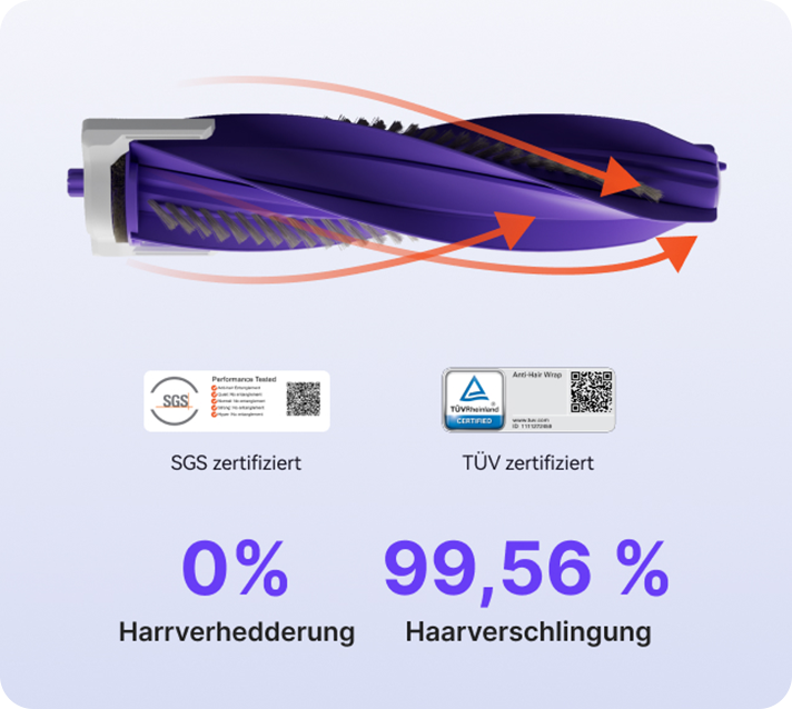 3. Verhedderungsfreie Schwebebürste: Eine Revolutionäre Innovation, bei der eine konische Reinigungsbürste an einem einzigen schwebenden Arm befestigt ist.