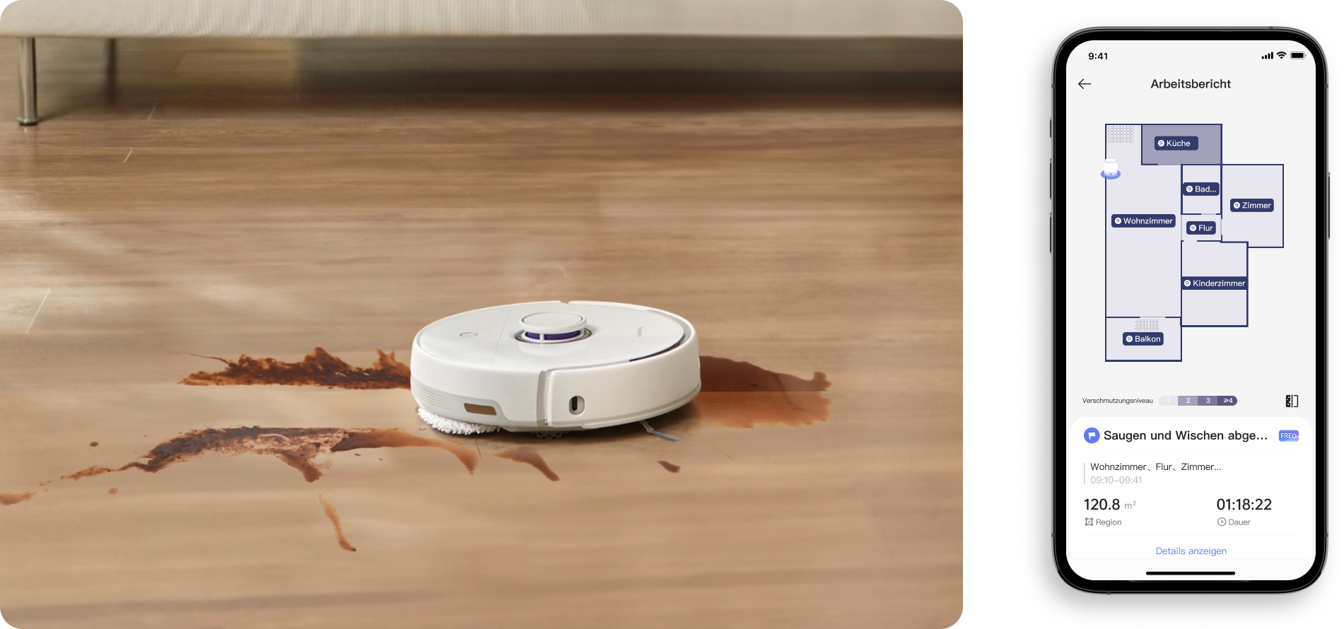 Wenn ein Bereich länger als eine Woche nicht gereinigt wurde, führt Freo X Ultra eine gründlichere Reinigung durch.