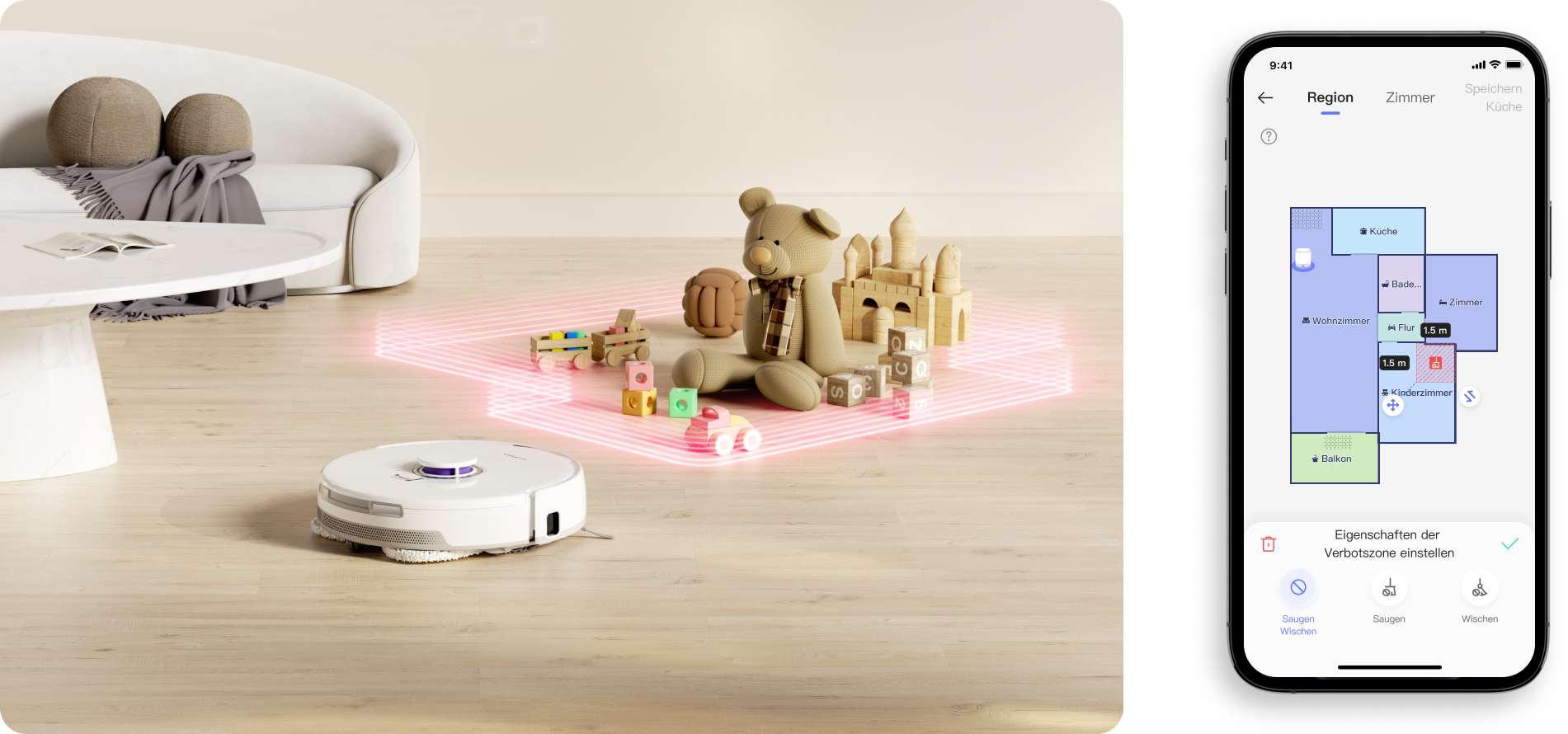 Dank 3D-Strukturlicht werden selbst kleinste Hindernisse umfahren, während der Freo X Ultra seiner Reinigungsroute folgt.