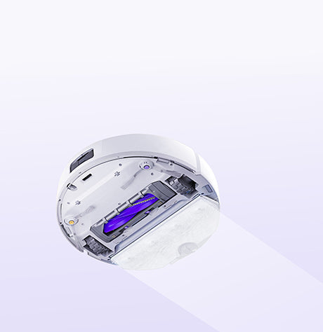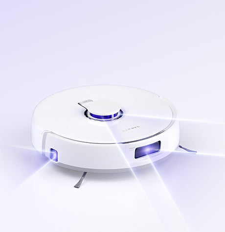 Zwei Seitensensoren und ein Frontsensor erkennen und umfahren kleinere Hindernisse wie Hausschuhe, Spielzeug und Stuhlbeine mit Leichtigkeit.