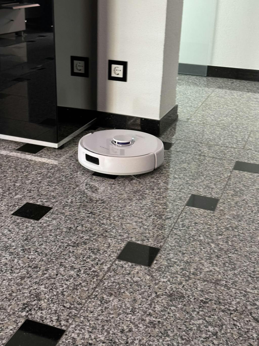 Eine Dreifach-Laseranordnung überwacht die Umgebung, um kleine und tief liegende Objekte zu vermeiden. Der Seitenlaser ermöglicht es dem Roboter, bis auf wenige Millimeter genau zu reinigen.