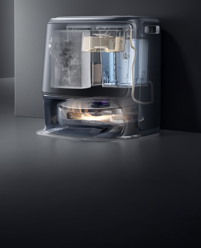- Die systematische Tiefenreinigungstechnologie: Passt sich in Echtzeit Ihrem Zuhause an, lernt kontinuierlich dazu und sorgt für eine personalisierte, vollständig automatische Reinigung.